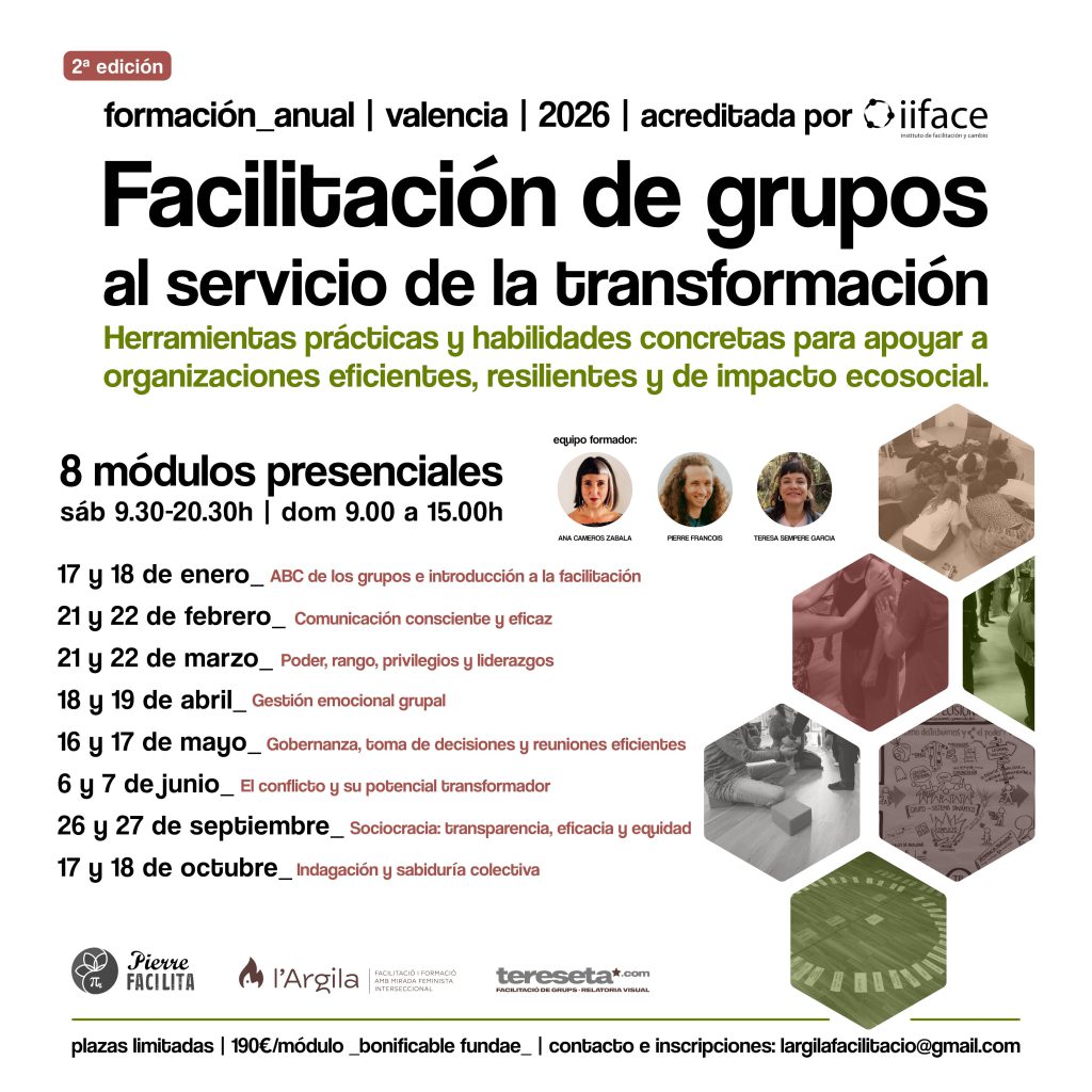 Nombre del curso: Facilitación de grupos al servicio de la transformación: herramientas y habilidades para apoyar organizaciones eficientes, resilientes y de impacto social Equipo…